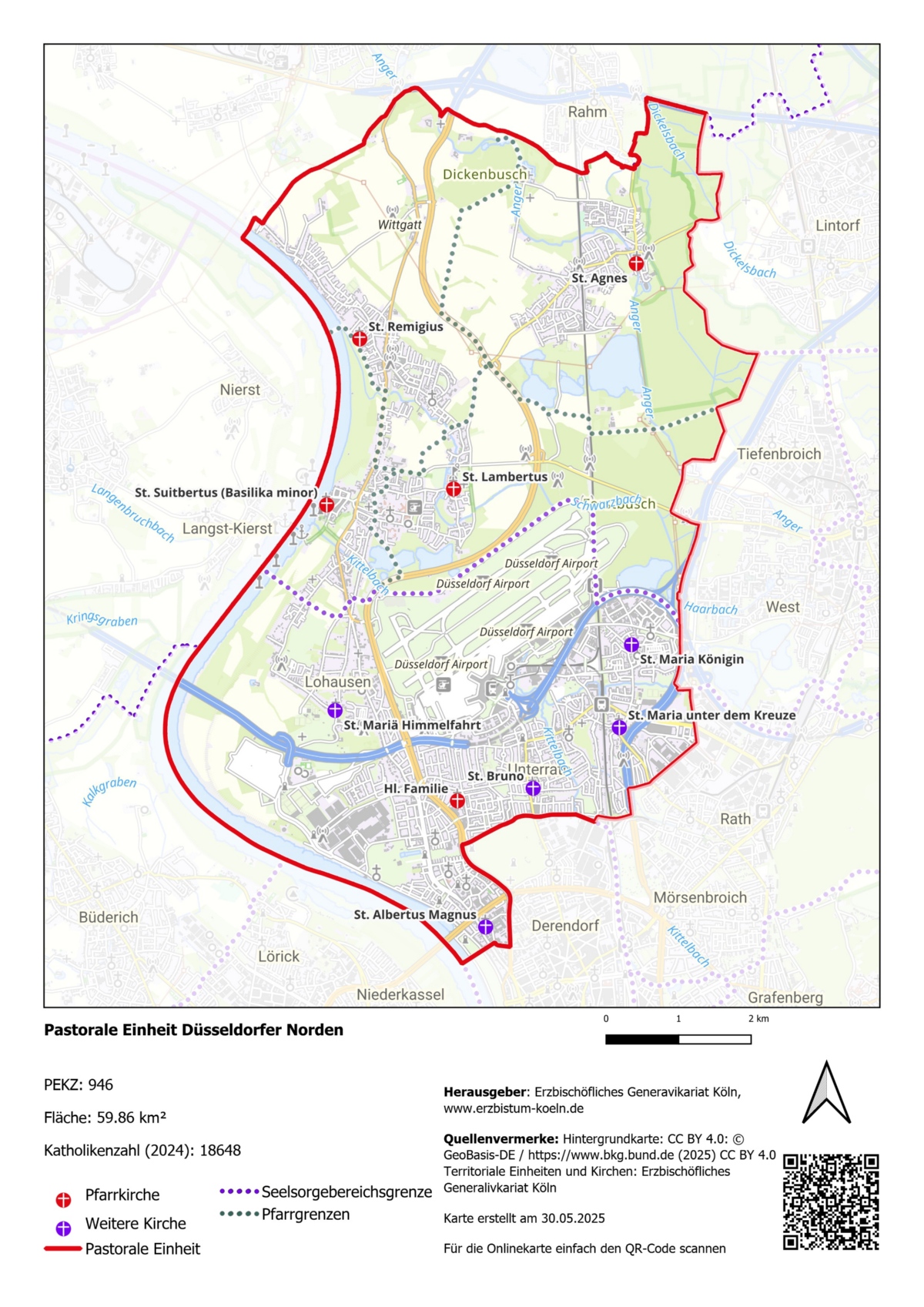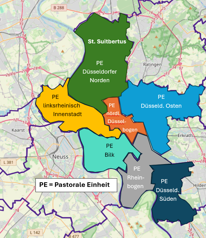 Die Fusion kreiert im Düsseldorfer Norden mit der „St. Suitbertus Pfarrei“ die flächenmäßig größte der sieben Pastoralen Einheiten Düsseldorfs: Sie bedeckt mehr als ein Viertel der Fläche Düsseldorfs – und ist kirchliche Heimat für über 18.000 Katholiken.